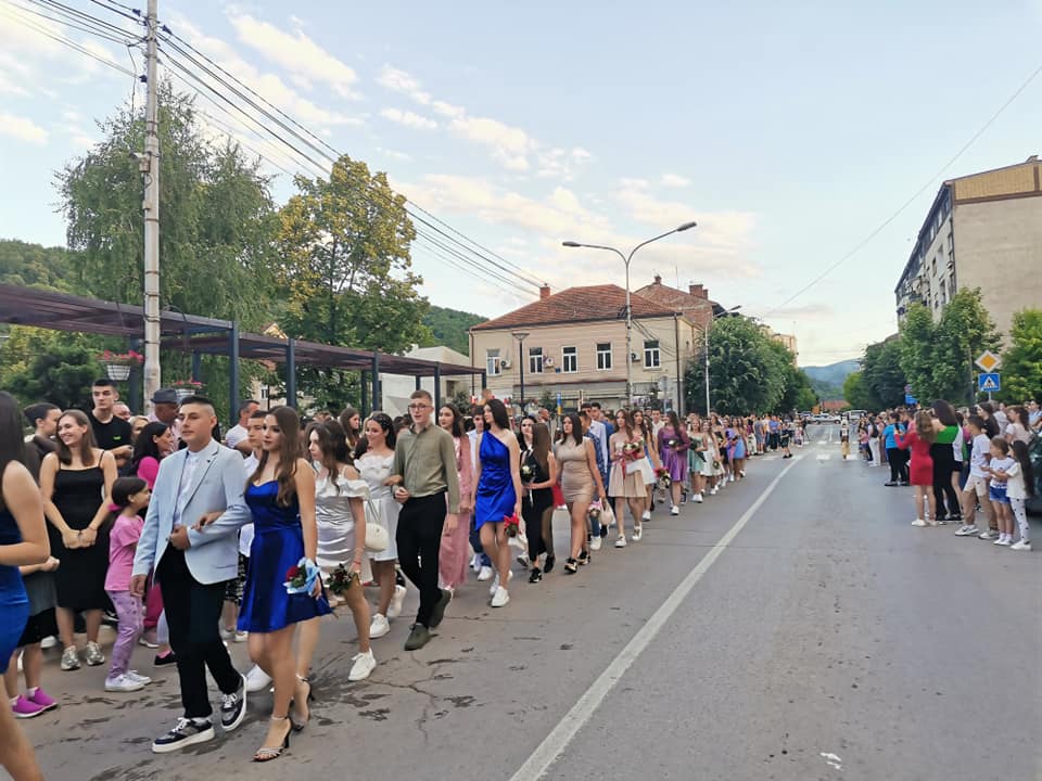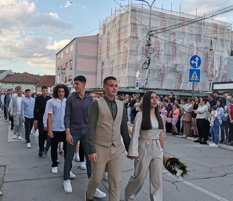 KURŠUMLIJA – Večeras su mali maturanti OŠ „Drinka Pavlović“ proslavili malu maturu. Pre početka slavlja 77 učenika prodefilovalo je centrom grada, gde su ih pozdravili okupljeni građani. Mali maturanti su istakli da su željno iščekivali ovo veče, bez obzira što su tek na polovini školovanja.