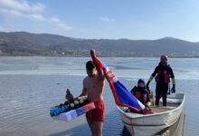 Miloš Andrejić iz Blaca prvi doplivao do Časnog krsta na jezeru Ćelije u Zlatarima kod Brusa
